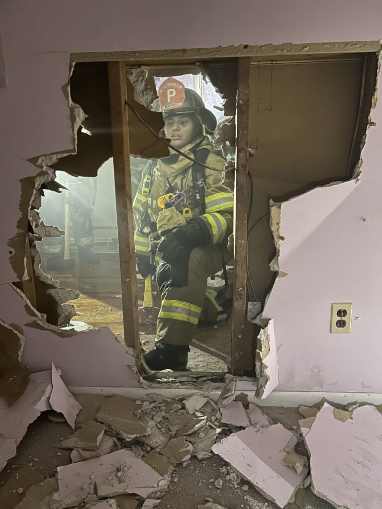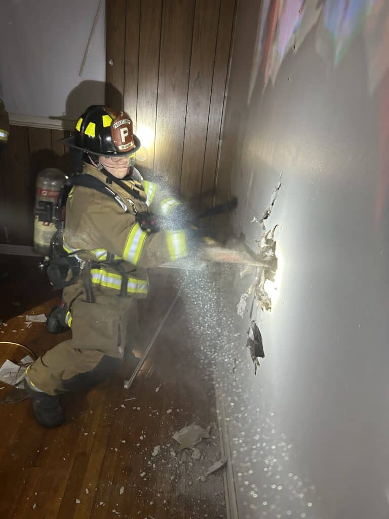 Firefighters practiced multiple realistic scenarios including advancing hose lines, fire attack operations, victim search and rescue, and rescuing a downed firefighter. The acquired structure provided an invaluable opportunity for our members to practice our skills in a real-world environment rather than traditional training props.