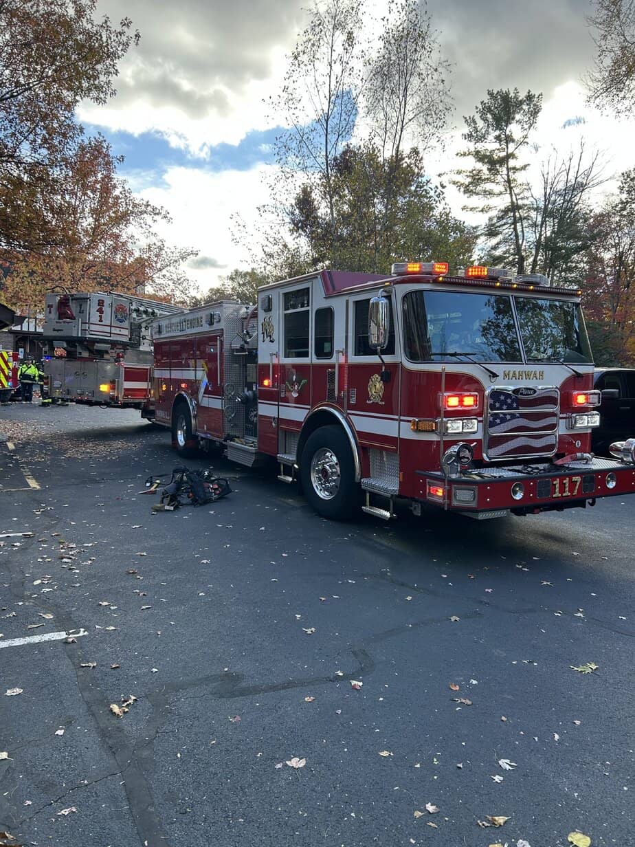 Wednesday afternoon the Mahwah Fire Department, EMS, Police, along with mutual aid companies from surrounding towns responded to a reported attic fire off of Ridge Road. Initial reports indicated smoke showing from the roof. Upon arrival of first due units, firefighters confirmed a working fire in the attic space. Rescue Engine 117 arrived on scene with a full crew, immediately stretching a second hand-line to help knock down fire. Rescue 1 arrived and conducted a search of the adjoining units in the structure. Reserve Engine (acting Engine 115) arrived and supplied additional manpower if needed. After the main body of fire was knocked down, firefighters conducted extensive overhaul operations to ensure complete extinguishment and performed mechanical ventilation to clear smoke from the attic area. All units operated on scene for approximately 3 hours before returning to quarters.