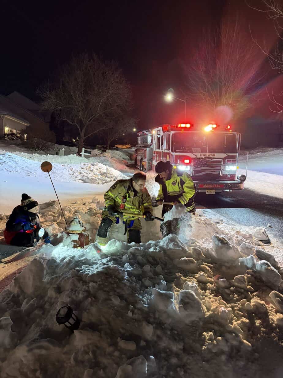 Last night Company 1 firefighters Volunteered their evening to clear the snow away from some of the hydrants in our zone after this weekend’s storm, and in anticipation of a second one possibly this weekend. Keeping hydrants accessible allows firefighters to quickly establish water supply during emergency operations. Even a few minutes saved in locating and accessing a hydrant can make a significant difference during a fire. We would like to remind Township residents to clear snow and ice from around the fire hydrants in their neighborhood. Photos/videos may not be used or reproduced for any reason without express permission.